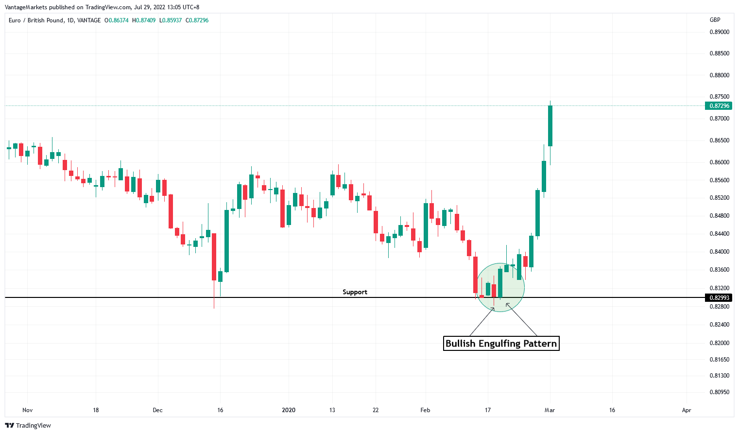 Figure 6 shows the bullish engulfing pattern in action. At a significant support, a bullish engulfing on EURGBP led to shift from bearish to bullish market structure.