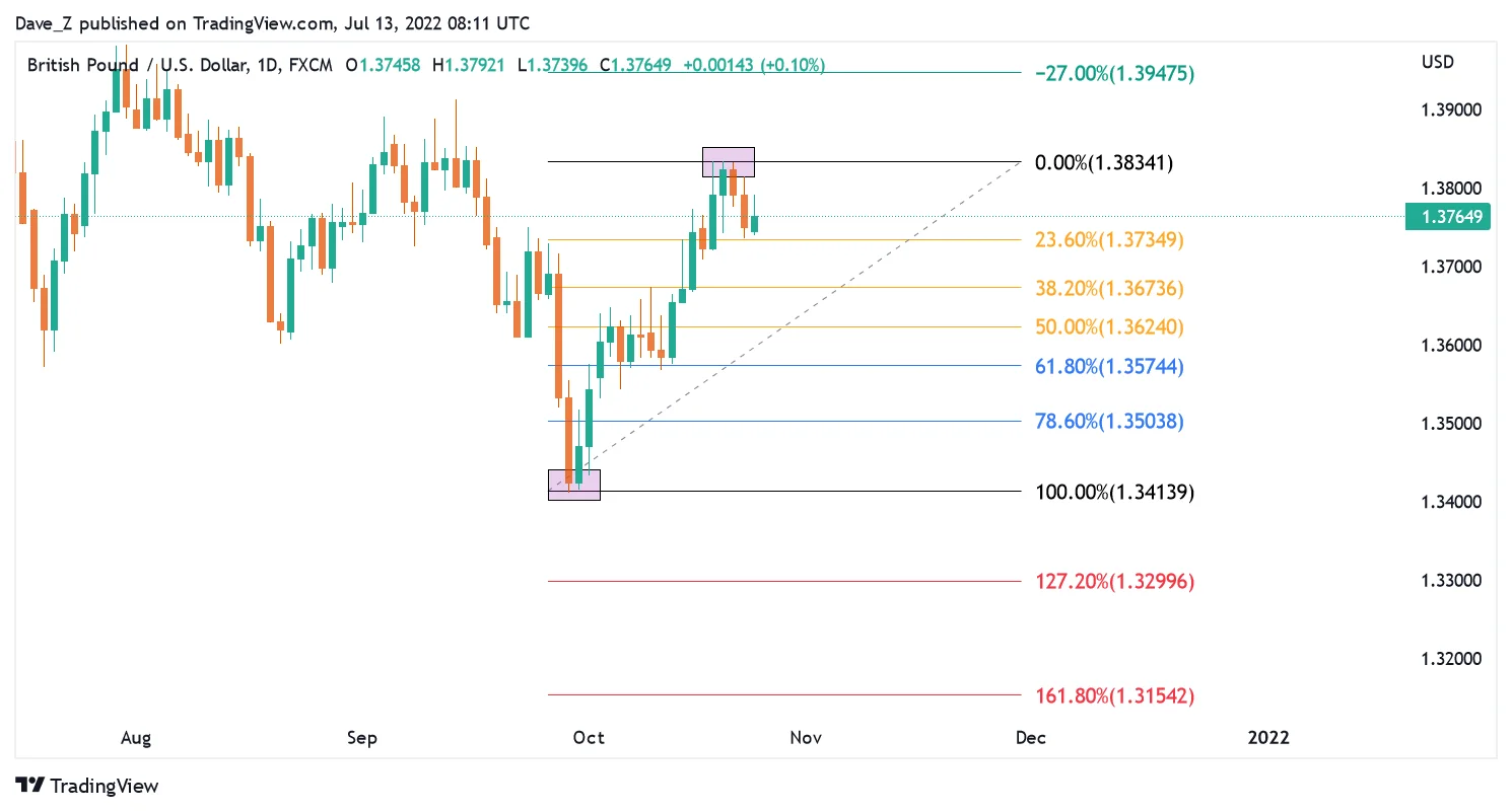 Note in figure 7, the Fibonacci Retracement is applied with the intent of a GBPUSD buy trade idea, from a swing low to a swing high.