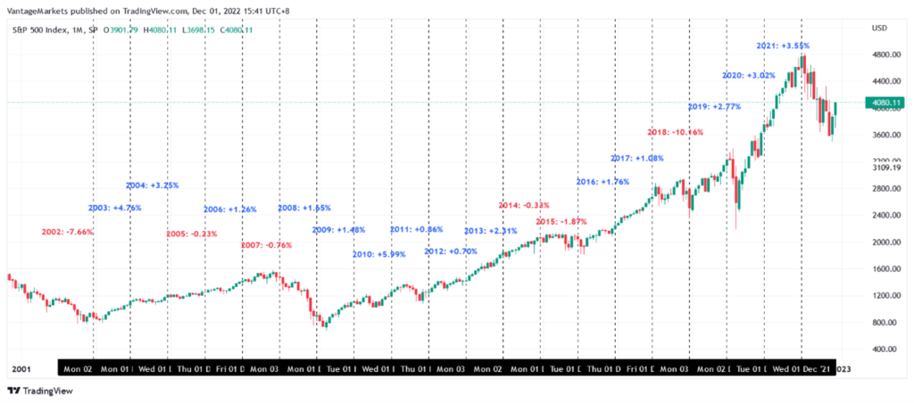 Based on data derived from Figure 1 and 2, 14 out of the 20 Decembers that occurred from 2002 to 2021 were positive months for the overall stock market. That is an average of 70% of bullish Decembers in the past two decades. Out of the 14 bullish Decembers, the average return was +2.46% while the six bearish Decembers had an average return of -3.50%.