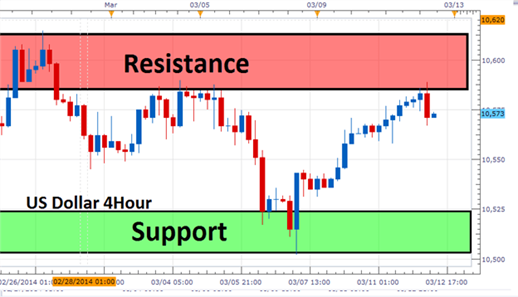Markets sometimes range between support and resistance levels. This is known as consolidation. When the market moves beyond the boundaries of consolidation to new highs or new lows, a breakout is said to have taken place. A breakout must occur right before a new trend sets in. Breakout points are, therefore, signals of the onset of new trends and offer the most interesting opportunities to traders to take positions. However, traders need to bear in mind that not all breakout points convert into a new trend.