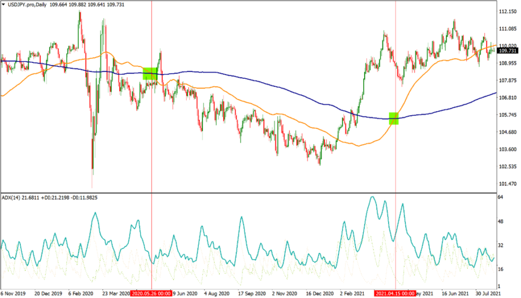 Crossovers are used to analyse moving averages. The most popular combination is the 50-day and 200-day simple moving averages. When the 50-day line moves above the 200-day one, it represents a buy signal. On the other hand, when the 50-day falls below the 200-day line, it is seen as a sell signal.