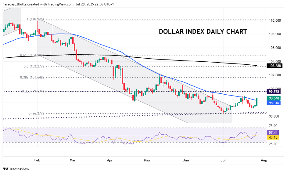 FX: USD saw broad gains after the US-EU trade agreement. We dive into the deal below. Otherwise, markets look ahead to a bumper week of data and events including the FOMC meeting and US GDP on Wednesday, core PCE inflation data on Thursday and the monthly US jobs report on Friday.