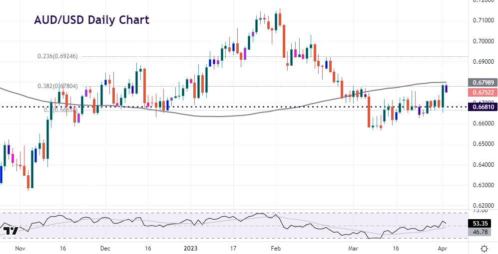 It seems we’ve focused on aussie pairs a lot recently. This time, it’s the major as the RBA kept its policy rate unchanged at 3.6%. This was inline with market pricing though economists were more torn between no move and a 25bp rate hike. This decision came on the back of weakening global growth and the banking sector upheaval. Calming inflation in Australia also helped policymakers. The lagged effects of 10 consecutive rate rises means it will take time to assess the impact on data. The bank did keep the option open to more hikes if wages and the labour market remain tight.