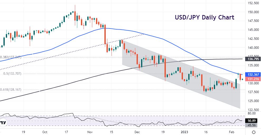 That said, we’ve seen the strongest wage growth in 25 years this week in Japan. The recent data heap more pressure on the new Governor. Kuroda has long touted earnings growth as the key to reviving sustained inflation in the economy. We are also approaching the wage negotiation season which will be followed closely. USD/JPY has broken out of its descending bear channel .The 50-day SMA capped the upside at 132.36. The 50% mark of the 2022 rally is at 132.70. Support sits at the top of the channel around 129.65.