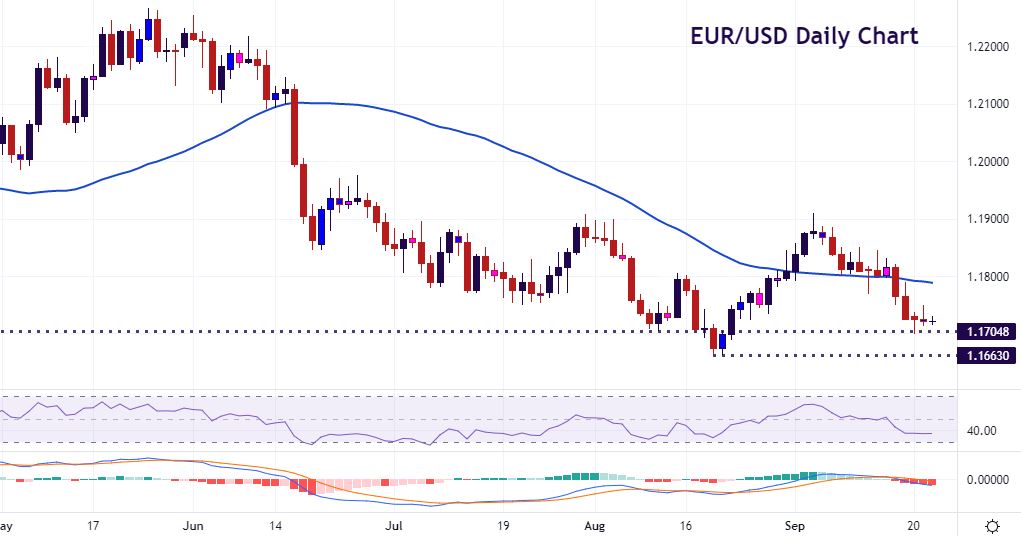 The Fed meeting later today has lost some of its importance after the recent sluggish jobs and CPI reports. Chair Powell wants to see improvement in the jobs picture even as he has stated it’s time to dial back stimulus this year. Consensus now sees a taper announcement in November with the start the following month. The hawkish risk lies in the Fed’s “dot plot”. Record job openings and resilient retail sales could make some Fed officials twitchy. Is it enough to bring forward their first rate hike call to 2022 from 2023? The market may also focus on the pace of the taper rather than the exact start date.