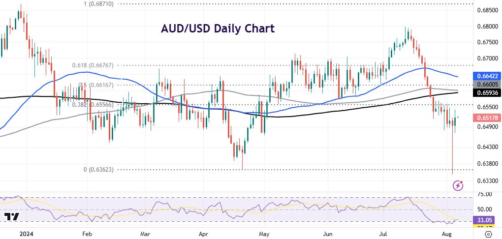 On the fundamental side, there is a clear disconnect between Governor Bullock’s assessment of inflation risks and the market’s continued optimism for rate cuts by year end. Money markets have priced in above an 80% chance of a 25bp rate reduction by the December meeting. Is that a hangover from the market turmoil of the last few days? If so, and Govenor Bullock is more correct rather than markets, AUD could rally into the autumn and year end.