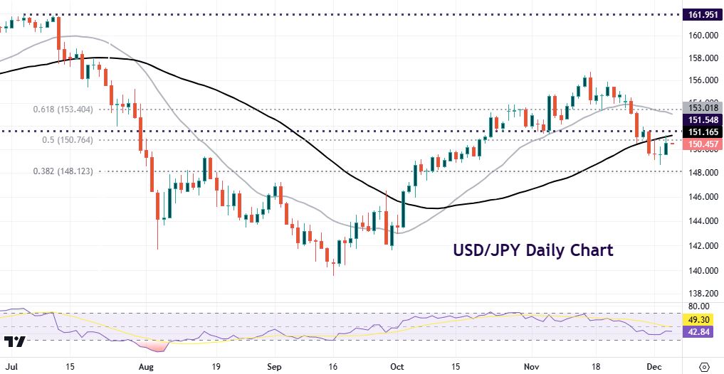 USD/JPY is also closely tied to the US 10-year Treasury yield. That means tomorrow’s NFP data will have a big bearing on near-term direction for the major. The 50-day SMA is 151.06 with the 50% mark of the summer decline at 150.76. A strong US labour market report may challenge the Fib level (61.85) of that move at `153.40. The retracement level below (38.2%) sits at 148.12. Note too the old intervention levels from 2022 and 2023 around 152.