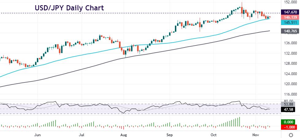 Twelve consecutive days of gains were too much for the Japanese authorities in mid-October. In that time, the major broke through the long-term high at 147.67 and spiked to 151.94. Massive intervention then followed as prices tumbled nearly 600 pips on the day. Since then, the pair has drifted around the 2002 high before moving to the lower end of the recent range.