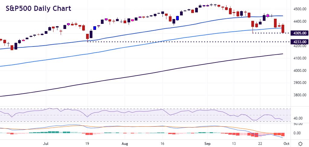 Like many in the market, we have highlighted the 50-day SMA as a decent line of support on the S&P500 over the last year or so. The recent selloff, rebound and subsequent drop in the index looks to have now made this a major level of resistance. Prices failed to get decisively above here around 4445 at the end of last week and we’ve fallen to the 100-day SMA which is now initial resistance at 4345.