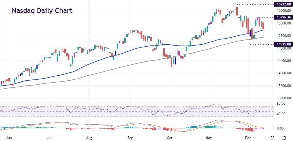 Stocks closed lower with the time ripe for traders to consolidate positions and reduce risk. Looming interest rate rises and the spread of Omicron have added to a small bias to sell as investors near the end of the year.
