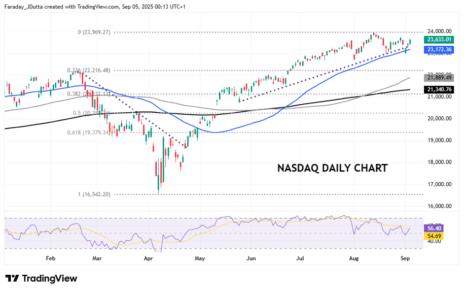 The tech-laden Nasdaq dipped out of its trend channel and below the 50-day SMA at 23,143 on the bond market volatility earlier in the week. The head and shoulders reversal pattern did look to be playing out too. But the index was saved by the Alphabet and Apple boost after the less severe than expected antitrust court ruling on Wednesday. The rebound means that could just be another minor correction, with bulls relieved to be eyeing up the record high just below 24,000. It’s down to NFP to dictate direction. A low print below 50k likely sees more selling as markets worry over the state of the economy, ie ‘bad news is bad news’. The flip side and a print above 120k would be seen as good news and stocks may rally closer to the record high.