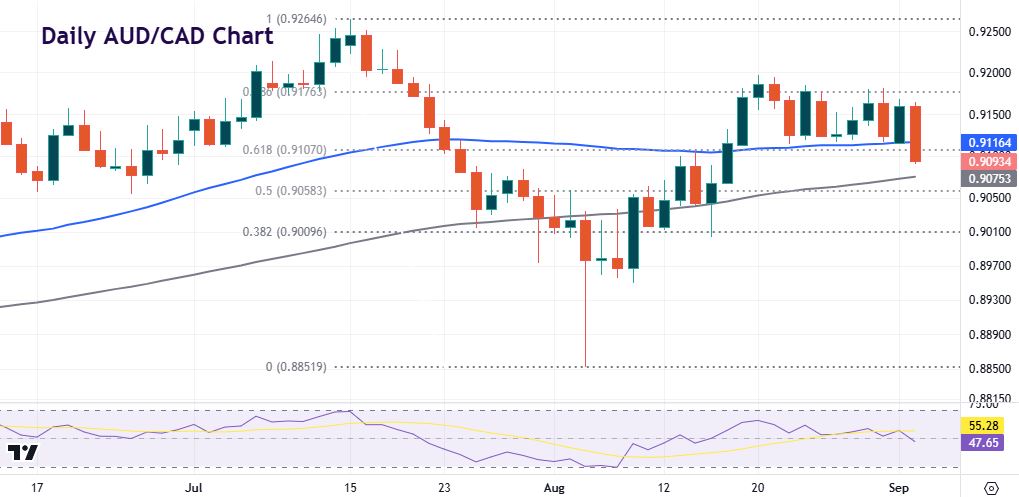 But the aussie suffered yesterday and the pair is moving out of that recent range. Below is the 100-day SMA at 0.9075 ahead of the 50% level of the July/August sell-off at 0.9058.