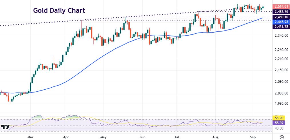 Gold has been tracking sideways since busting up through the previous record high set in July at $2483. Gold bugs pushed up prices in mid-August with a fresh upside breakout and subsequent intraday peak at $2531. Since then, the precious metal has more or less traded in a range between that top and a few dips below $2483. The longer it tracks sideways, the bigger the breakout should be.