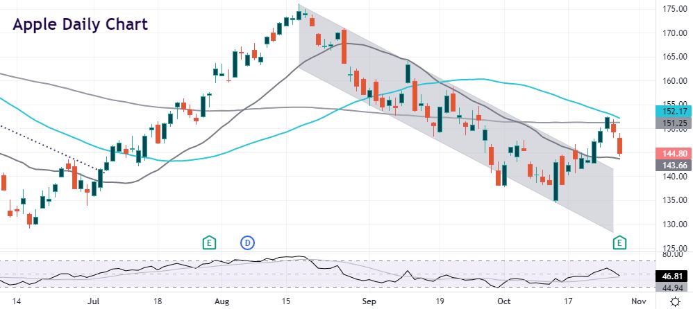 The stock is very modestly in the green in the after-market having dropped over 3% yesterday. The recent rally in stocks saw prices break out of the descending bear channel from the August highs. But the 100-day SMA at $151.25 and the 50-day SMA at $152.17 has capped the upside. The 21-day SMA at $143.66 will be important having acted as resistance since late August.