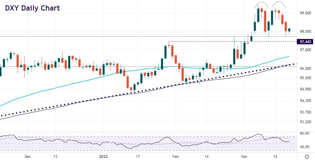 We wrote yesterday that the energy shock to prices may weigh on growth. Higher inflation is coming and is expected to peak at 8% in April. The market had expected four more hikes this year after the one yesterday. But this may be excessive and see cable struggle going forward. The UK is an energy importer, like Europe and is more sensitive to events in Ukraine than the greenback.