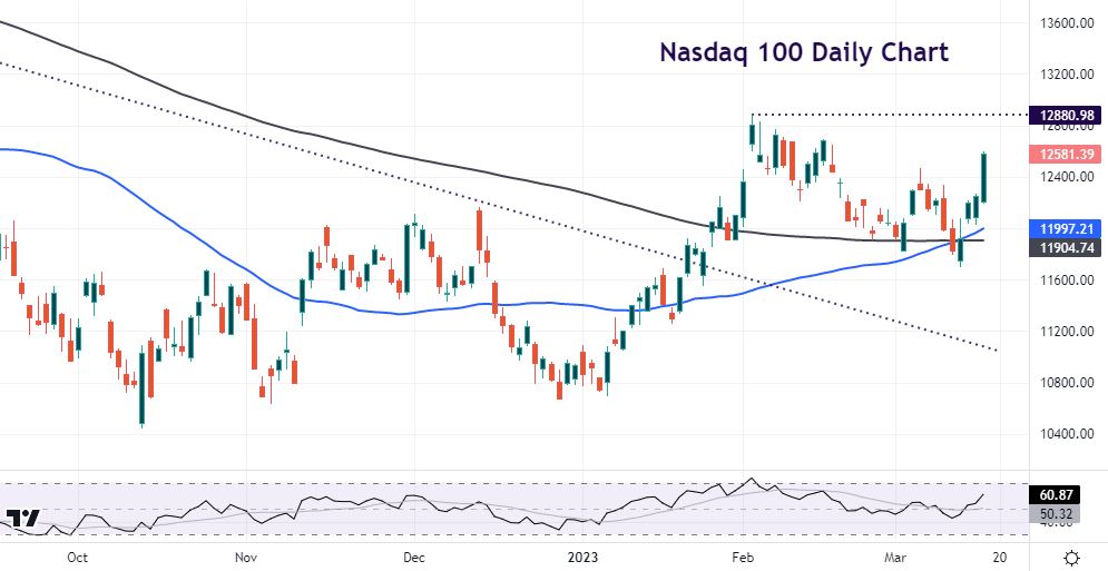 It’s been a week to remember, full of volatility and whipsaw price action. The reports that US banks would work together to shore up First Republic bank with a $30bn deposit gave investors confidence that a full-scale crisis could be averted. We note that the bank did suspend its dividend after hours and is sharply lower again in after-hours trading. This came a day after the Credit Suisse tumult. The ECB tried to shore up sentiment by reassuring it had the tools to provide liquidity if needed.